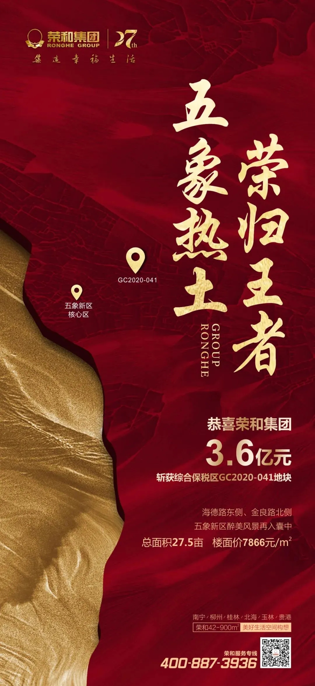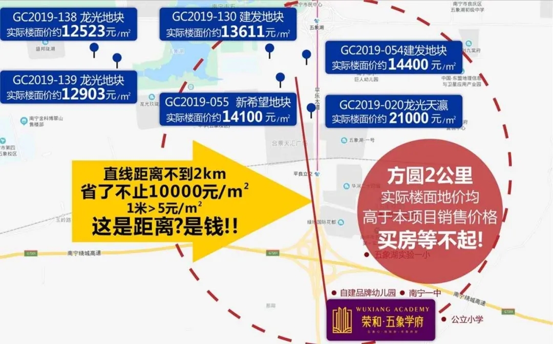 但反觀五象湖南,在能夠享受到五象湖配套的同時,售價不到地王們的樓面價,與五象湖價差達1萬元+/㎡了,性價比相當高。 五象新區(qū)建設(shè)還將繼續(xù)向南拓展,作為未來產(chǎn)業(yè)聚集的五象南也被各界看好,已日漸成為置業(yè)五象價值洼地的新選擇。 5月土拍中,榮和集團以約3.6億元的總價拿下五象南27.571畝住宅地塊,樓面價達到破板塊記錄的7866元/㎡。此次土拍10家房企多輪競價,可見五象南價值潛力不容小覷。