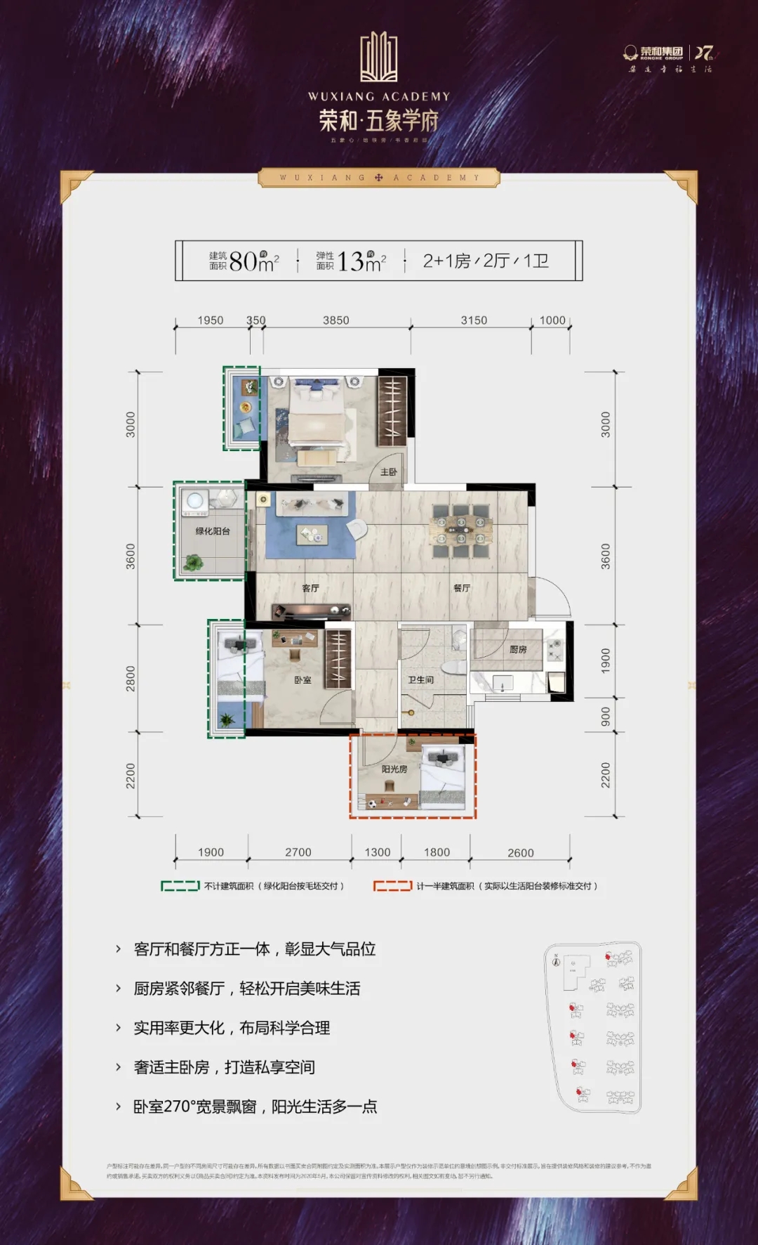 另外,還有優(yōu)質(zhì)的內(nèi)部配套:80000㎡新亞洲風情園林、800米夜光跑道、2000㎡會所恒溫泳池、9000㎡幼兒園、15000㎡學(xué)府街等。榮和·五象學(xué)府主要產(chǎn)品面積為80-125㎡的2+1房、3+1房戶型+1房的貼心設(shè)計。不僅做到了與市面上同等面積段戶型一樣的寬敞格局,在確保不影響其他使用空間尺寸前提下還多出來一間功能房。